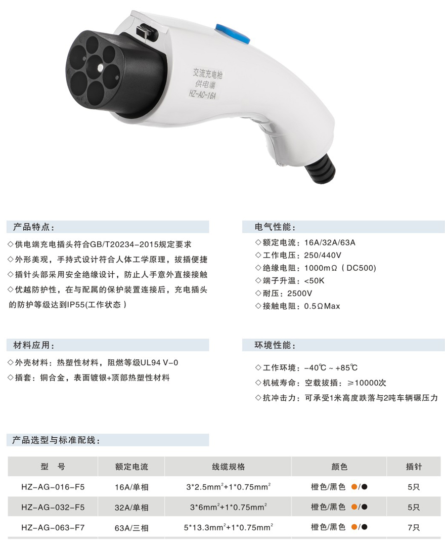 交流充电插头(车辆端/供电端)